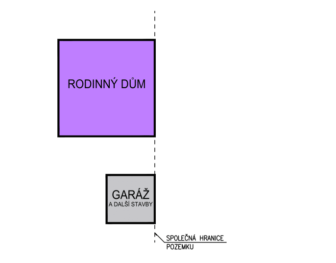 (5) Vzdálenost stavby garáže a dalších staveb souvisejících a podmiňujících bydlení umístěných na pozemku rodinného domu nesmí být od společných hranic pozemků menší než 2 m.