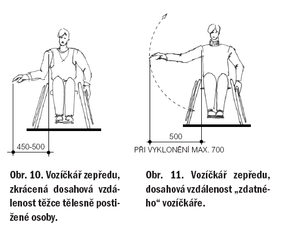 - umístění ovládacích prvků v dosahové vzdálenosti osoby na vozíku.