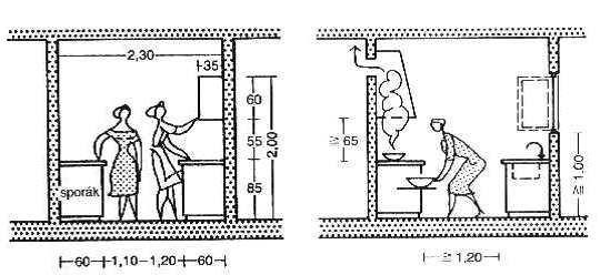 - výšku pracovní plochy, rozmístění kuchyňských spotřebičů a zařizovacích předmětů řešit dle konkrétního uživatele (pravák nebo levák)