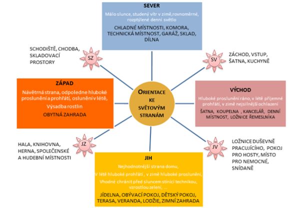 - ideální orientace oken na východ