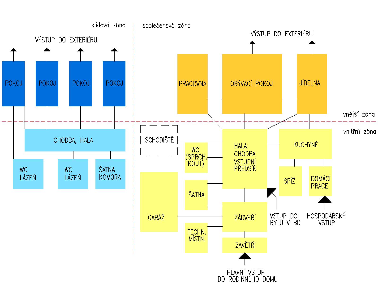 Definice: Prostor pro odpočinek nebo spaní, nacházející se v klidové části (zóně) domu.