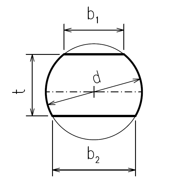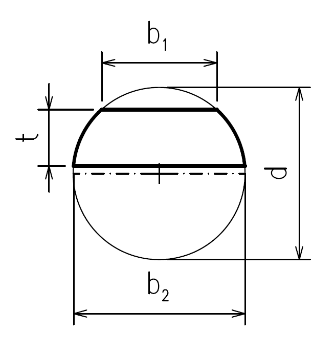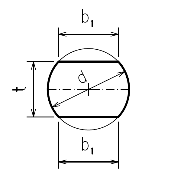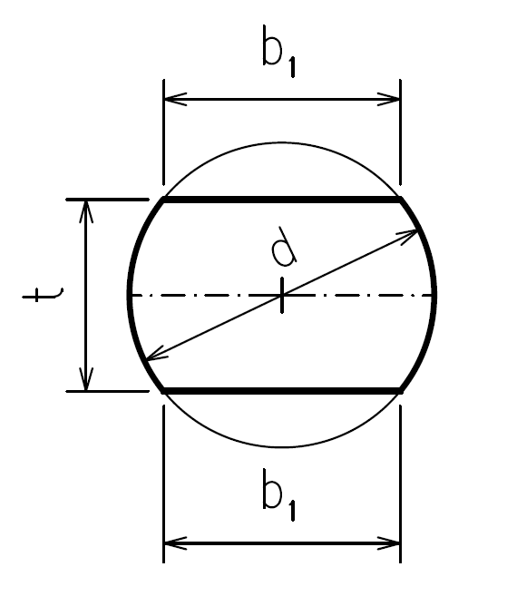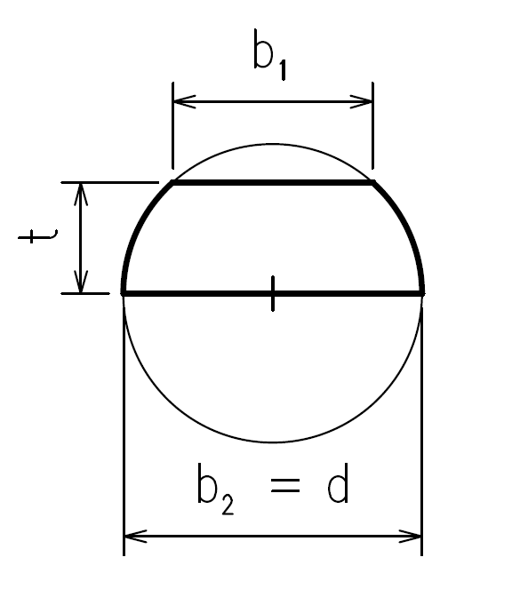 III) Polohraněné řezivo zahrnuje dvoustranně řezané řezivo o šířce b menší než dvojnásobek tloušťky t, mající oblé boky po výřezu, z něhož bylo vyrobeno.