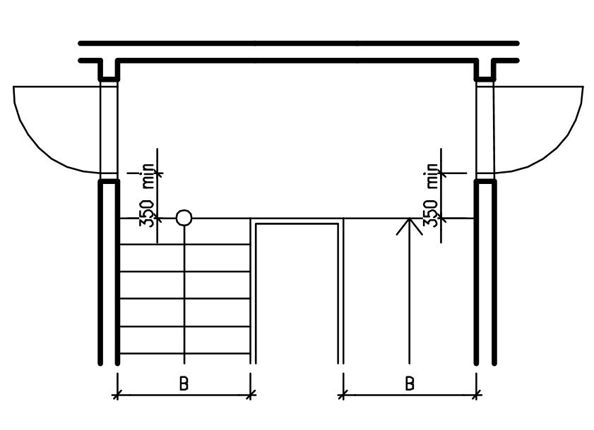 1) Průchodná šířka podlažních podest Bp se doporučuje nejméně o 100 mm až 200 mm větší, než je průchodná šířka přilehlých ramen B.