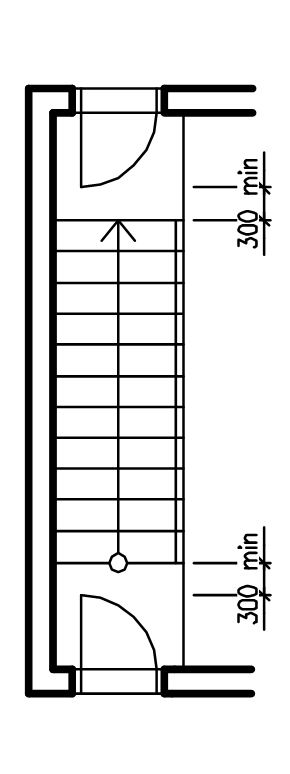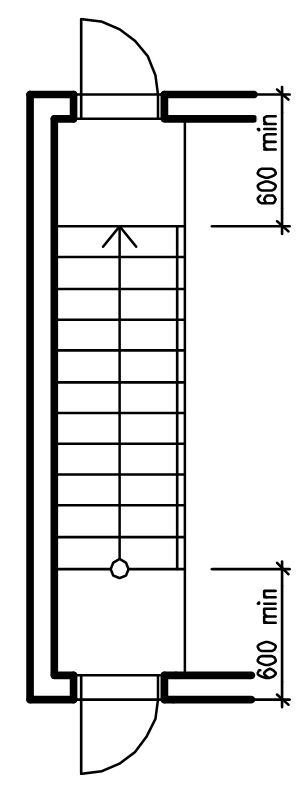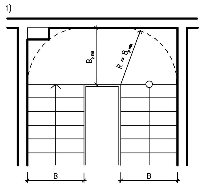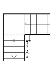 1) Hrana výstupního stupně se nesmí protínat v jednom bodě s hranou nástupního ramene, vzdálenost hran bmin= 130 mm.
