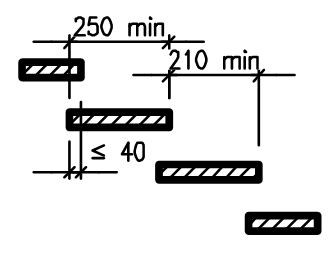 7° < α ≤ 45° | ≥ 210 mm | ≥ 250 mm | ≥ 130 mm | ≥ 310 mm | NORM) | 2) |