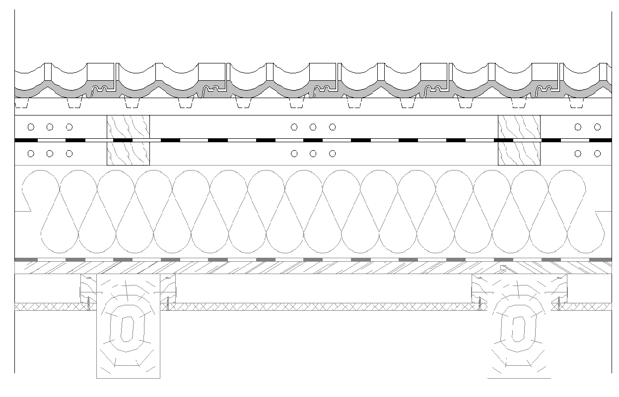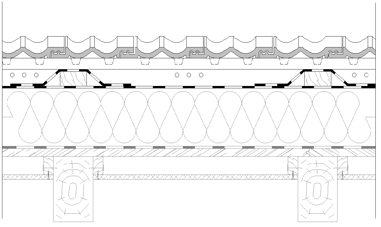 U většiny šikmých střech je vodotěsnící konstrukce složená obvykle z horní skládané vodotěsnící vrstvy a z doplňkové vodotěsnící vrstvy umístěnou pod horní a oddělenou vzduchovou vrstvou; horní skládaná vodotěsnící vrstva může částečně propouštět vodu, doplňková vodotěsnící vrstva pod ní tuto vodu odvádí.