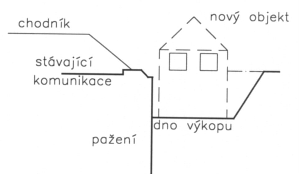 Svahovaný výkop blízko stávajícího nebo nového objektu | |